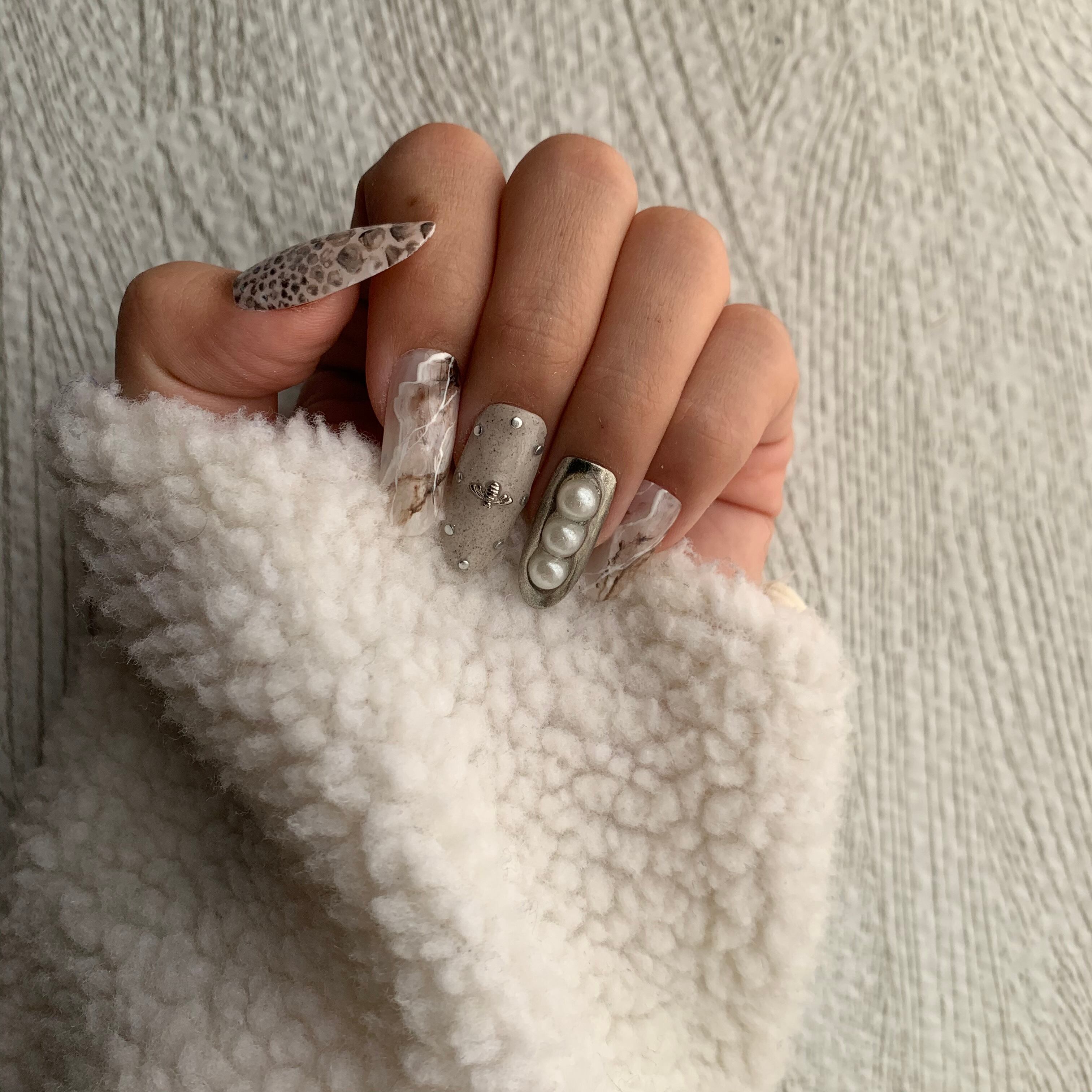 パイソンネイル × 天然石ネイル